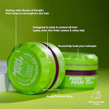 واکس مو نیشمن شماره ۰۵ KERATIN محصولی حرفهای از برند ترکیهای Nish Man است که علاوه بر حالتدهی قوی و پایدار، با ترکیب کراتین به تقویت و محافظت از موها کمک میکند. این واکس برای کسانی طراحی شده که علاوه بر استایل حرفهای، به سلامت و استحکام موهایشان اهمیت میدهند.