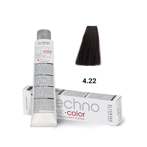 رنگ مو آلترگو تکنو 4.22 بلوطی زنبقی شدید Alter Ego Techno Hair Color 4.22 Chestnut Intense Iris – Made in Italy رنگ خاص و حرفهای با تهرنگ بنفش، پوشش کامل موهای سفید