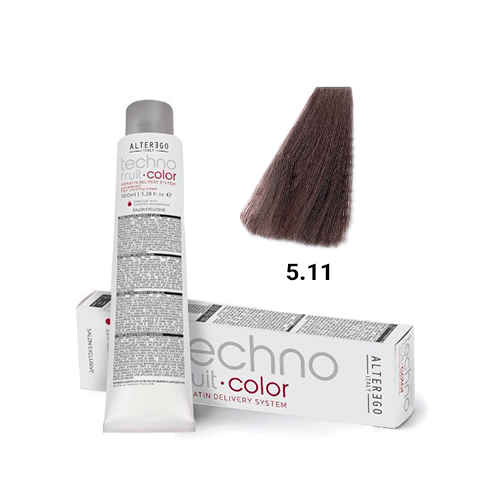 رنگ مو آلترگو تکنو 5.11 قهوهای روشن خاکستری قوی Alter Ego Techno Hair Color 5.11 Light Intense Ash Brown – Made in Italy رنگ سرد و طبیعی با تهرنگ خاکستری قوی، پوشش کامل موهای سفید، فرمول حرفهای ایتالیایی