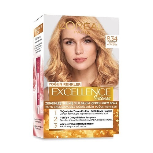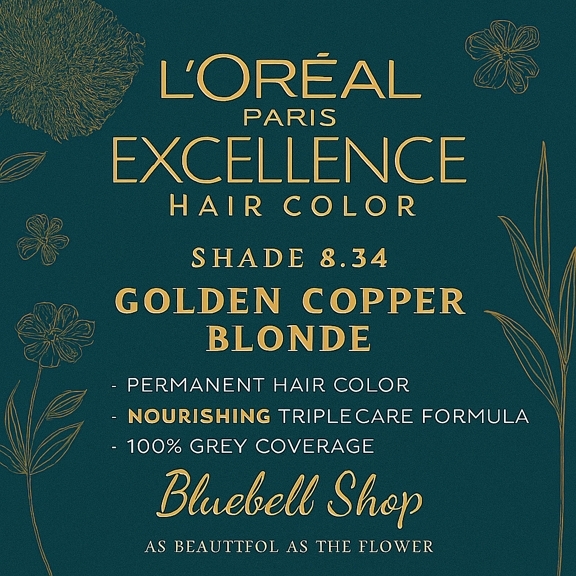 رنگ مو L'Oréal Excellence شماره ۸.۳۴ (بلوند طلایی مسی)، با فرمول سهگانه محافظتکننده، جلوهای گرم، درخشان و لطیف به موها میبخشد. این رنگ ترکیبی از طلایی و مسی است که برای ایجاد ظاهری شاداب، پرانرژی و خاص طراحی شده است.