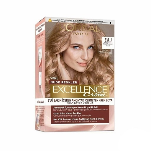 L'Oréal Excellence Universal – Shade 8U با فرمول بدون آمونیاک، موها را بدون آسیب رنگ میکند و با ترکیبات مغذی، لطافت و درخشندگی طبیعی را حفظ میکند. رنگ بلوند روشن آن، جلوهای شفاف و لطیف دارد. مناسب برای استفاده خانگی، با بستهبندی کامل مراقبتی و ساخت فرانسه.
