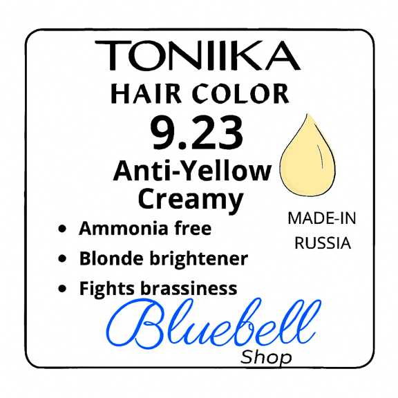 رنگ مو Tonika شماره 9.23 با تناژ کرمی ضد زردی، انتخابی تخصصی، لطیف و خنثی برای کسانی‌ست که به‌دنبال حذف تناژ زرد ناخواسته از موهای روشن یا دکلره‌شده هستند. این رنگ بدون آمونیاک، با فرمول گیاهی و بافت کرمی، موها را به‌طور یکنواخت رنگ می‌کند و جلوه‌ای بلوند کرمی با ته‌رنگ خنثی و درخشندگی طبیعی ایجاد می‌نماید.